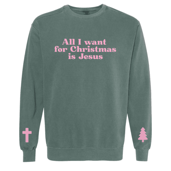 Let your faith shine bright this holiday season with the All I Want For Christmas Is Jesus Sweatshirt. Printed on a premium Comfort Colors crewneck in a muted green, this sweatshirt pairs vintage softness with a timeless truth. The soft pink lettering on the front says it all—Jesus is the heart of Christmas.