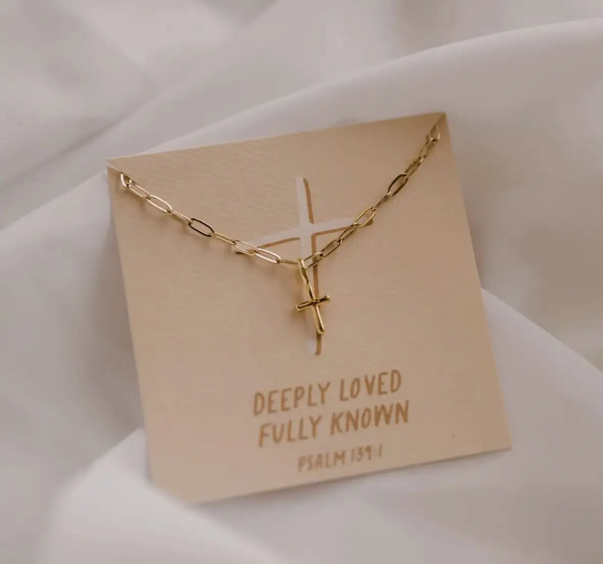 Deeply Loved, Fully Known Necklace – Christian Cross Pendant (Psalm 139:1)