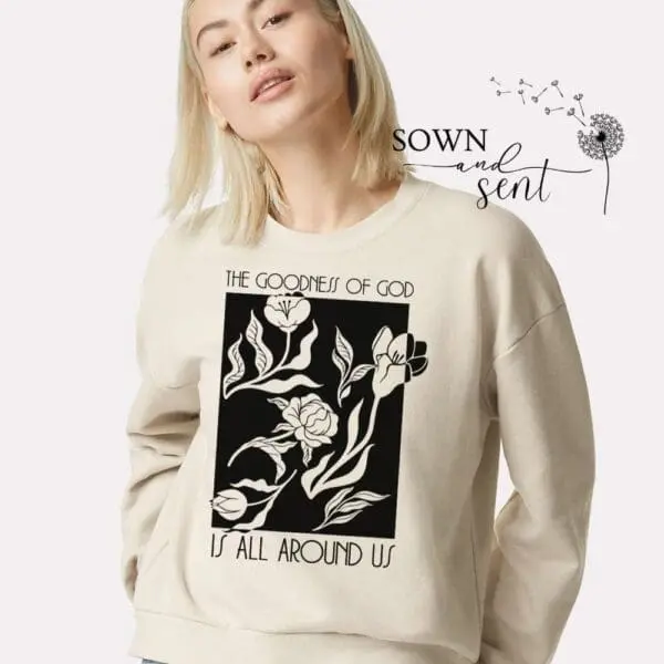 The goodness of God is all around us. This women’s cropped crew neck sweatshirt will be a favorite in your closet.