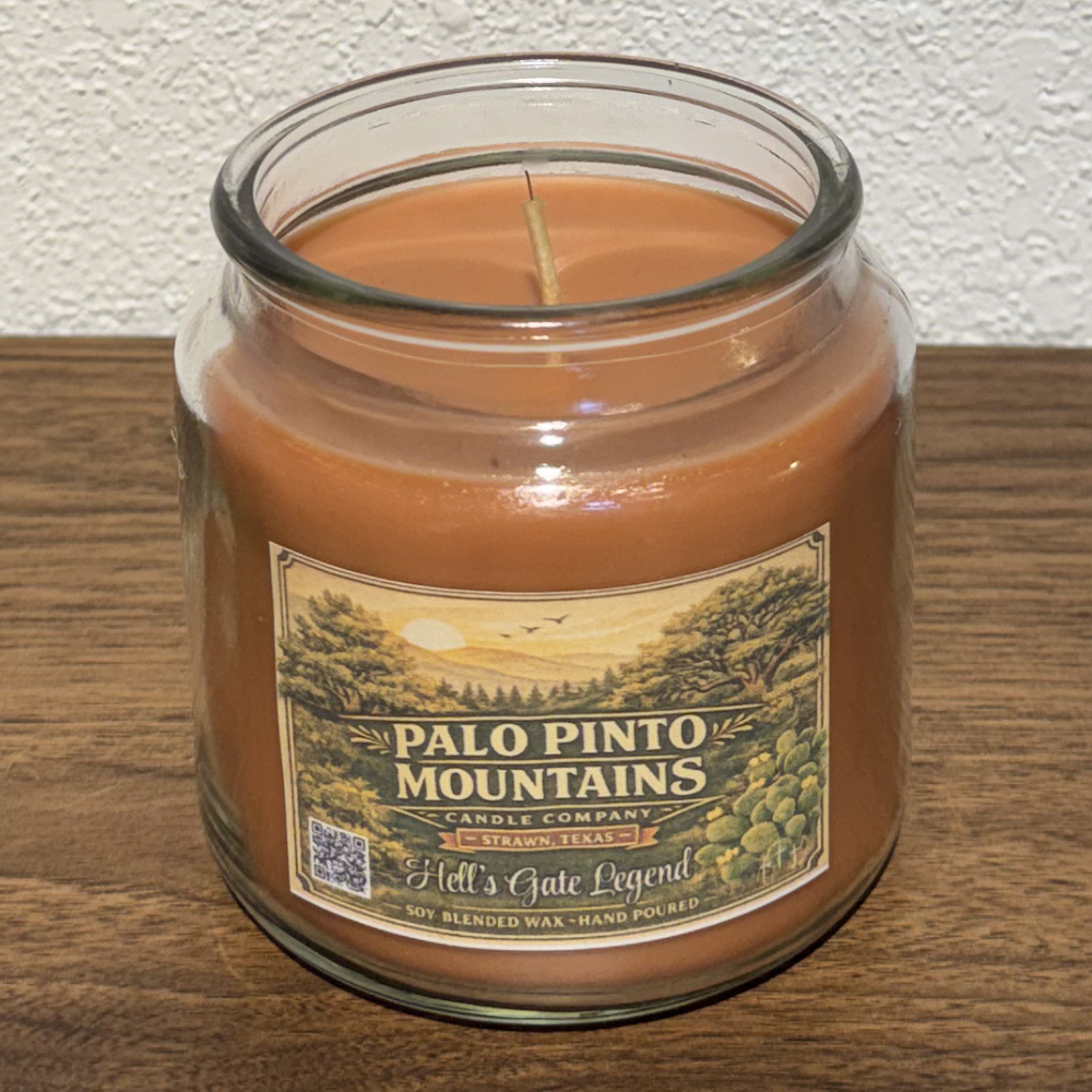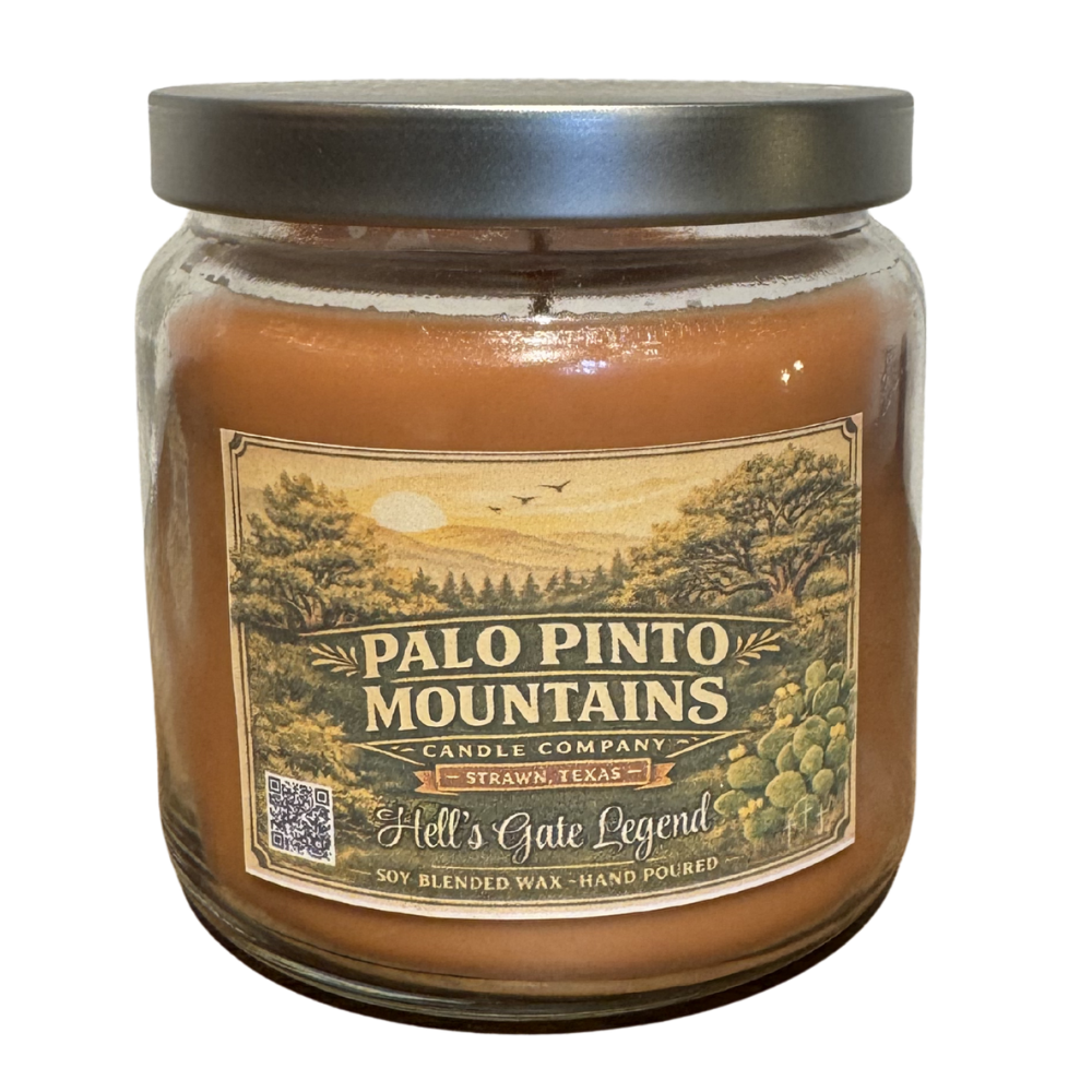 Inspired by one of the most iconic landmarks in Palo Pinto County, the Hell’s Gate Legend Candle – 16oz Soy Blend captures the rugged beauty and rich history of the legendary Hell’s Gate rock formation at Possum Kingdom Lake.