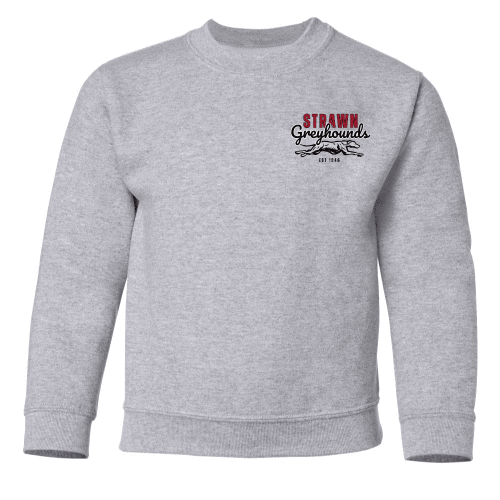Front of youth Strawn Greyhounds sweatshirt with small left-chest logoKids Vintage Greyhounds Crewneck Sweatshirt