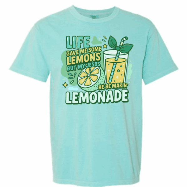 Printed on a soft 100% cotton Comfort Colors shirt in a refreshing minty aqua, the relaxed unisex fit and pigment-dyed finish make it feel like your favorite vintage tee right from the first wear. It’s breathable, comfy, and packed with personality — perfect for sunny days, lemonade stands, youth groups, summer camps, or just living your faith out loud.