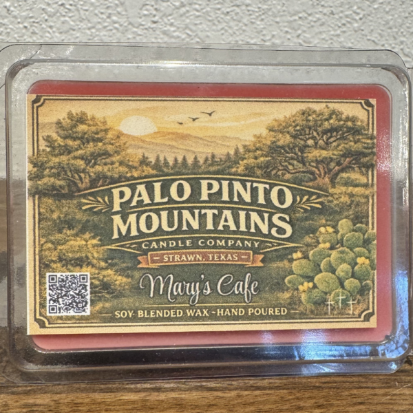 Mary’s Cafe has been serving comfort food and Texas hospitality for generations. It’s more than a restaurant — it’s a piece of Palo Pinto County history. These wax melts capture that warm, welcoming, small-town feeling and turn it into a cozy home fragrance experience.