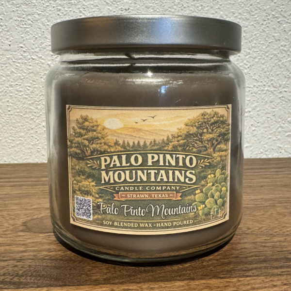 The Palo Pinto Mountains Candle – 16oz Soy Blend Candle Hand Poured in Strawn, Texas captures the strength, stillness, and sweeping views of the Palo Pinto Mountains in North Central Texas. Hand poured in Strawn, Texas by Palo Pinto Mountains Candle Company, this 16oz soy blended wax candle reflects the rugged landscape, golden sunsets, and wide-open skies that define the region.