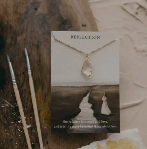 True beauty radiates from the inside out. The Reflection Necklace is a shimmering reminder that what’s in your heart will shine through your life. Inspired by Proverbs 27:19 – “As water reflects the face, so one’s life reflects the heart.” This necklace is a celebration of the beauty found in a Christ-centered life.