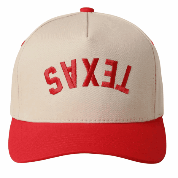 Show off your Lone Star pride with a twist. The Upside Down Texas Embroidered Hat is a fresh, confident take on classic Texas gear. With bold red embroidery spelling “TEXAS” upside down on a clean tan front panel and matching red bill, this hat doesn’t just make a statement—it flips it.