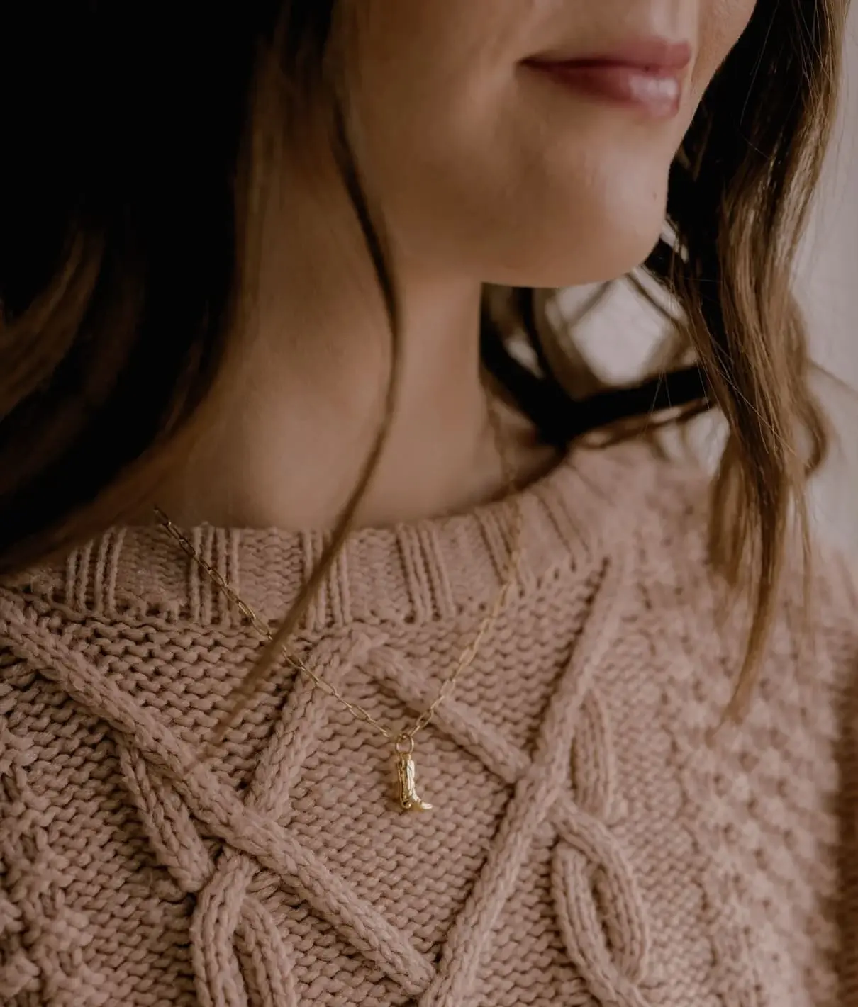 A bold reminder of your journey with Jesus, the Walk By Faith Boot Charm Necklace is a meaningful statement of faith and style. Inspired by 2 Corinthians 5:7 – “For we live by faith, not by sight”, this piece features a detailed western boot charm on a dainty 14kt gold-plated mini paperclip chain, symbolizing strength, courage, and daily trust in the Lord.